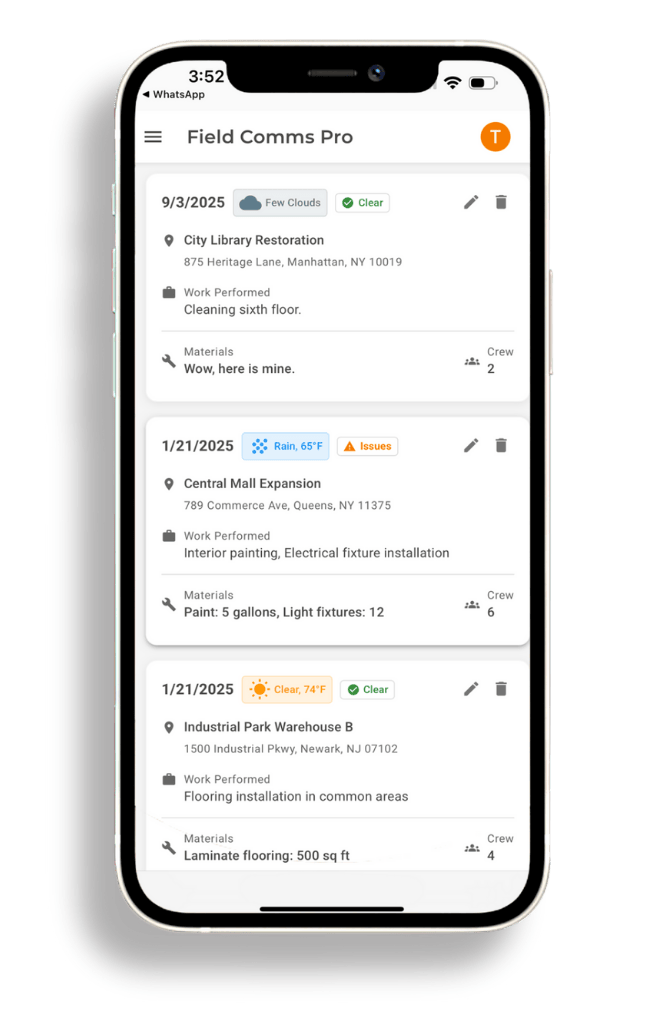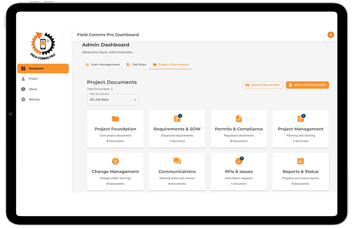 Field Comms Pro is designed specifically for crews working on-site, making it simple to capture updates, share information, and stay aligned